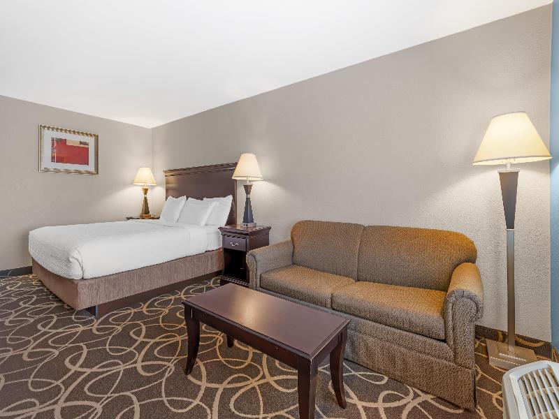 The Best Western Plus Eau Claire Conference Center offers stylish, well-appointed rooms and modern amenities for both business and leisure travelers seeking comfort and convenience. Pet-friendly and located near the Chippewa Valley Bike Trail, the hotel features an indoor heated pool, fitness center, and complimentary full breakfast. Business travelers will appreciate the business center and meeting/banquet facilities for up to 300 people. Additional amenities include guest laundry, a game room, and the on-site Black Bear Bar & Grill. Local attractions such as Leinenkugel's Brewery, Oakwood Mall, and the University of Wisconsin-Eau Claire are within easy reach. For those seeking outdoor activities, Carson Park, the Chippewa River Trail, and Irvine Park (with a free zoo) are nearby. A shuttle service is available within a five-mile radius (by appointment).
