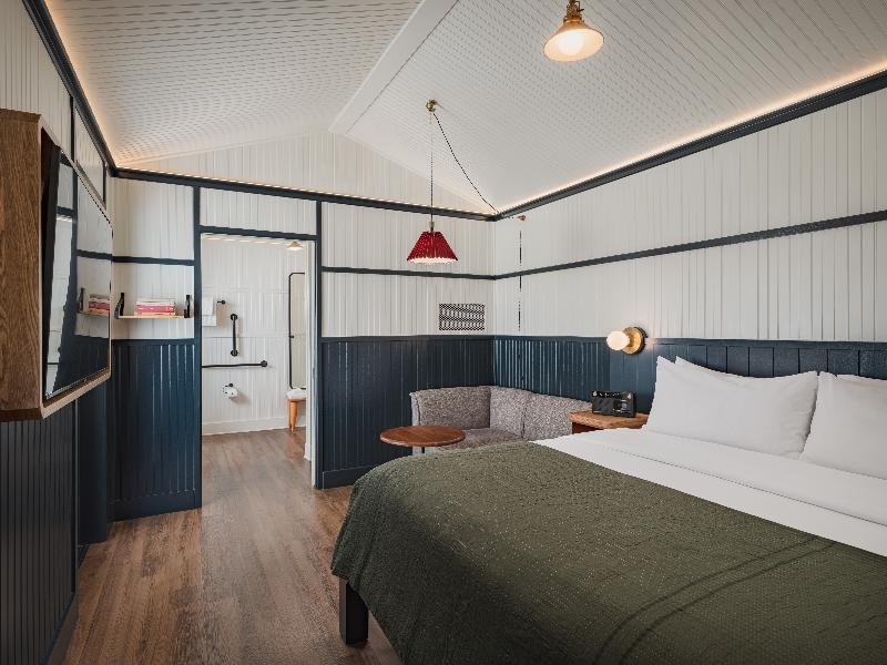Inspired by the rugged beauty of Northern Arizona's mountains, forests, and highways, the High Country Motor Lodge (HCML) offers a unique experience in Flagstaff. More than just a roadside motel, this vintage-style retreat blends contemporary design and adventurous spirit. Check-in is at 4 pm, and check-out is at 11 am. Late departures are subject to a fee. Located in the heart of Flagstaff, HCML is a central point along historic Route 66, adjacent to Northern Arizona University and downtown. Relax on the communal lawn, enjoy a craft beer from The General Store, explore the nearby woods, or rejuvenate at Arizona's first Nordic Spa.