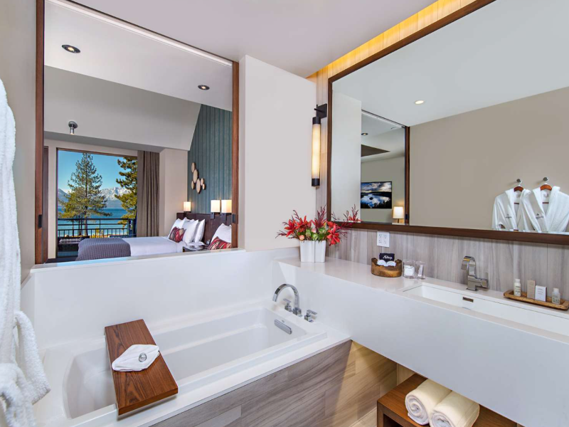 Pamper yourself with a visit to the spa, which offers massages, body treatments, and facials. When the sun is out, a round of golf or a day at the private beach are two great options for taking advantage of the fine weather. This hotel also features concierge services, ski storage, and gift shops/newsstands. Grab a bite at Bistro at Edgewood Tahoe, one of the hotel's 3 restaurants, or stay in and take advantage of the room service (during limited hours). Snacks are also available at the coffee shop/cafe. Wrap up your day with a drink at the poolside bar. Full breakfasts are available daily from 7 AM to 11 AM for a fee. Featured amenities include dry cleaning/laundry services, a 24-hour front desk, and luggage storage. Planning an event in Stateline? This hotel has 7502 square feet (697 square meters) of space consisting of a conference center and meeting rooms. Make yourself at home in one of the 154 air-conditioned rooms featuring fireplaces and indoor private spa tubs.