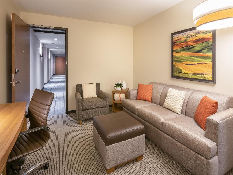 Guest rooms feature the Hyatt Grand beds, state-of-the-art media and work center with a high-definition 42-inch flat panel HDTV that easily integrates with laptops, a comfortable cozy corner L-shaped sofa-sleeper, wet-dry bar and bathrm vanity with granite countertops. Enjoy comp wireless high-speed internet and comp a. m. Kitchen Skillet, with hot breakfast items, fresh fruit, oatmeal and plenty more to choose from.
