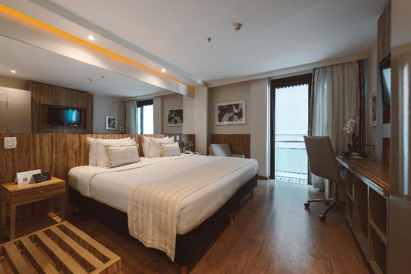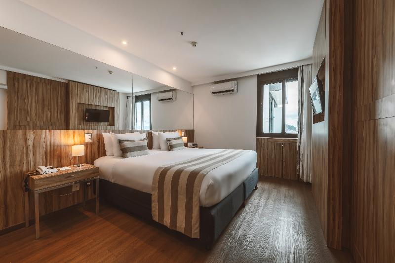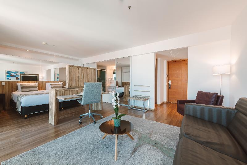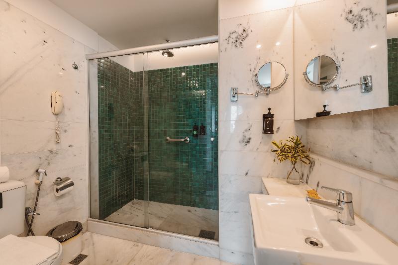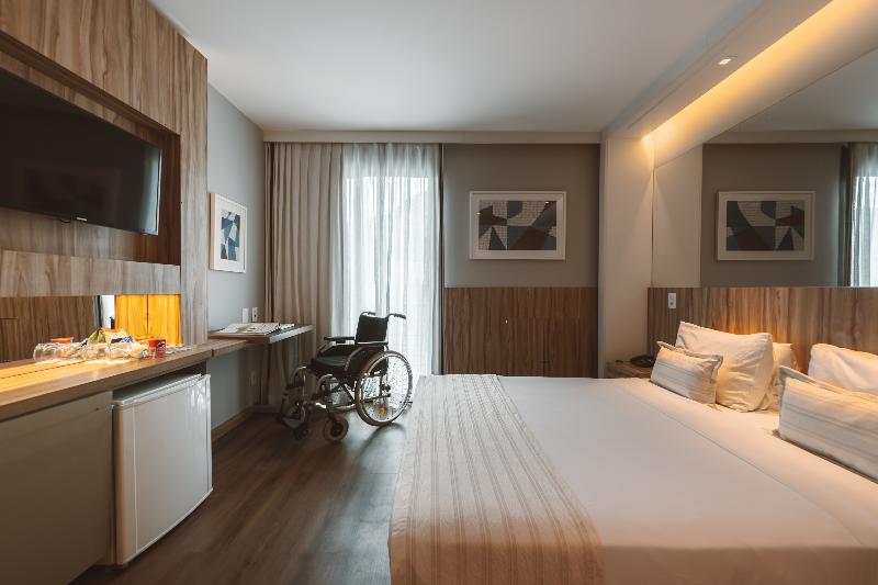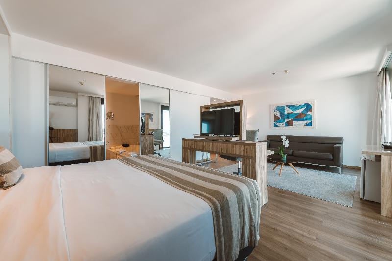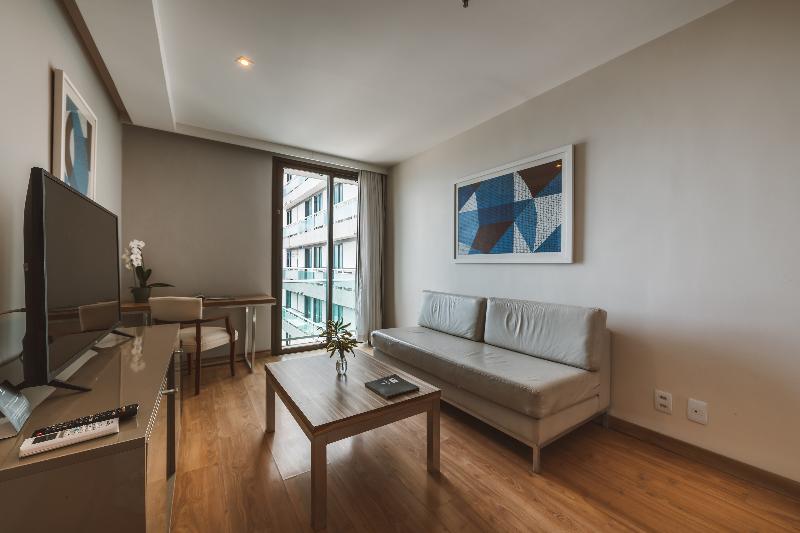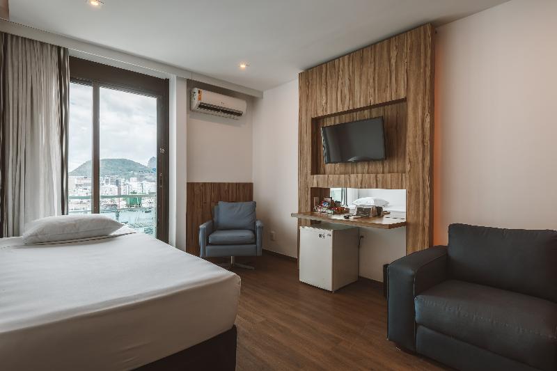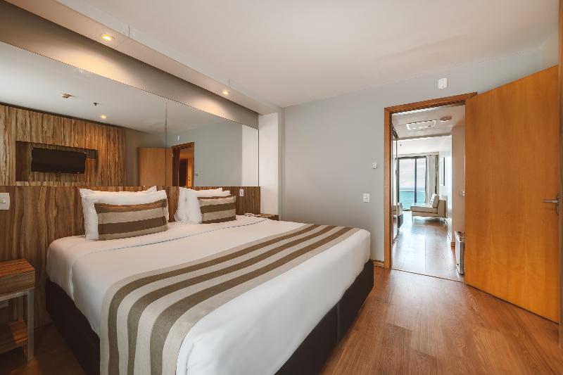 This attractive hotel is superbly situated in Copacabana and is only separated from the beach by the Avenida Atlântica coastal road (50 m). Breath-taking views of the beach are to be enjoyed from the hotel. Numerous shopping and entertainment facilities are just a few minutes walk from the hotel. The local airport is about 30 km away, whilst the center of Rio Branco is roughly 20 km from the complex. Renovated in 2002, the hotel includes 216 rooms over 15 floors. Guests are welcomed in the large foyer where 3 lifts are ready to take them up to the comfortable accommodation units. All rooms are fitted with individually controlled air-conditioning for maximum comfort. The hotel also offers many leisure activities and ample dining options. The breakfast takes place at the restaurant Cais da Ribeira (ground floor). Please note that an optional tourism fee of R$ 7 is charged per room per day. The price for parking is R$80 per car, per night. Please note that the rooftop will be closed for maintenance between April 25th and April 30th.