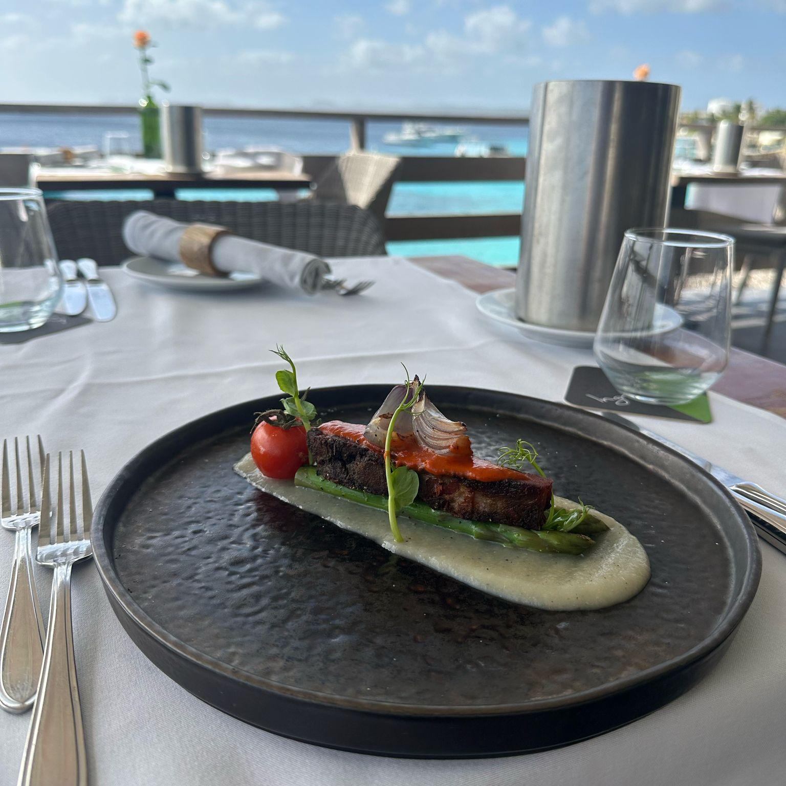 Ingridients Restaurant, nestled within Buddy Dive Resort in Kralendijk, Bonaire, offers a refined dining experience that combines Mediterranean culinary traditions with locally sourced ingredients, all set against the backdrop of the Caribbean Sea. The restaurant boasts an open-air design, providing diners with unobstructed views of the ocean. It's an ideal spot to enjoy a meal while watching the sunset, making for a romantic and picturesque dining experience. The ambiance is described as elegant yet comfortable, aiming to offer guests a unique and personal story through its food, decor, and service. Ingridients offers a diverse menu that showcases Mediterranean cuisine, incorporating French, Spanish, and Italian influences. Dishes are crafted using fresh, local produce, ensuring a seasonal and flavorful dining experience. A standout feature is the Parmesan Truffle Pasta, prepared tableside in a large Parmesan wheel, adding an interactive element to the meal. The restaurant also provides weekly 4-course specials, allowing guests to explore a variety of flavors. Whether you're a local resident or a visitor to Bonaire, Ingridients Restaurant offers a memorable dining experience that combines exquisite cuisine with breathtaking views. It's a place where culinary artistry meets the natural beauty of the Caribbean.