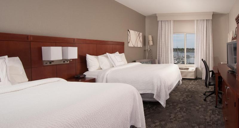 Enjoy Charleston from the waterfront Courtyard Charleston Waterfront by Marriott. Take advantage of the outdoor pool, spa tub, and 24-hour fitness center. The hotel also offers complimentary Wi-Fi, concierge services, and gift shops. A convenient area shuttle (surcharge) provides access to nearby attractions. Dining options include a restaurant, coffee shop/cafe, and bar/lounge. Cooked-to-order breakfasts are available daily (fee applies). For business needs, there's a 24-hour business center and meeting rooms. Other amenities include dry cleaning/laundry services, a 24-hour front desk, and self-parking (surcharge). The 179 guest rooms feature refrigerators, microwaves, complimentary wired and wireless internet, flat-screen TVs with satellite programming, and private bathrooms with complimentary toiletries and hair dryers. Safes, desks, and phones with free local calls are also provided. Nearby attractions include Harborage at Ashley Marina, Charleston City Marina, Historic Rice Mill, and more. Charleston Intl. Airport (CHS) is the preferred airport.