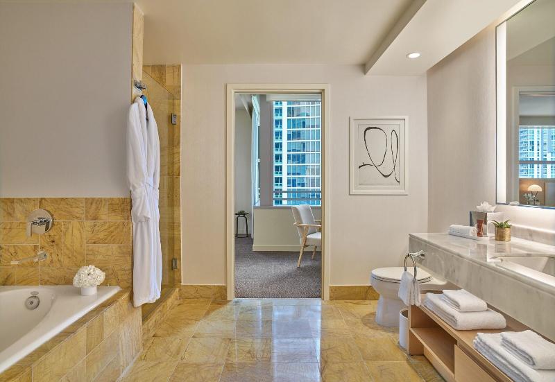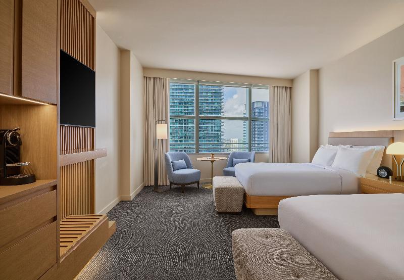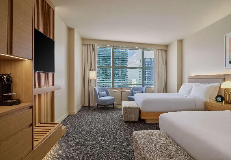 The AKA Brickell Hotel, with its minimalist contemporary design, is situated in the heart of Miami's Brickell financial district, just 15 minutes from Miami International Airport. Its prime location on Brickell Avenue provides easy access to attractions like South Beach, Coconut Grove, and Key Biscayne, and puts a myriad of shops and restaurants within walking distance. Overlooking the sparkling waters of Biscayne Bay, this sleek, downtown hotel offers various accommodations, from guest rooms and studios to one- and two-bedroom suites. Experience Miami's vibrant scene from our rooftop Sky Bar+Grill with refreshing cocktails and Mediterranean bites, or lounge by the pool. Savor international flavors at Zeru Miami, specializing in Basque and Mediterranean cuisine, or enjoy the fresh, vibrant Mediterranean-inspired menu at Adrift Mare by Michelin-starred Chef David Myers.
